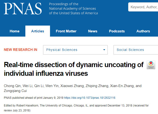 病毒學國家重點實驗室崔宗強團隊追蹤到單個流感病毒脫殼過程